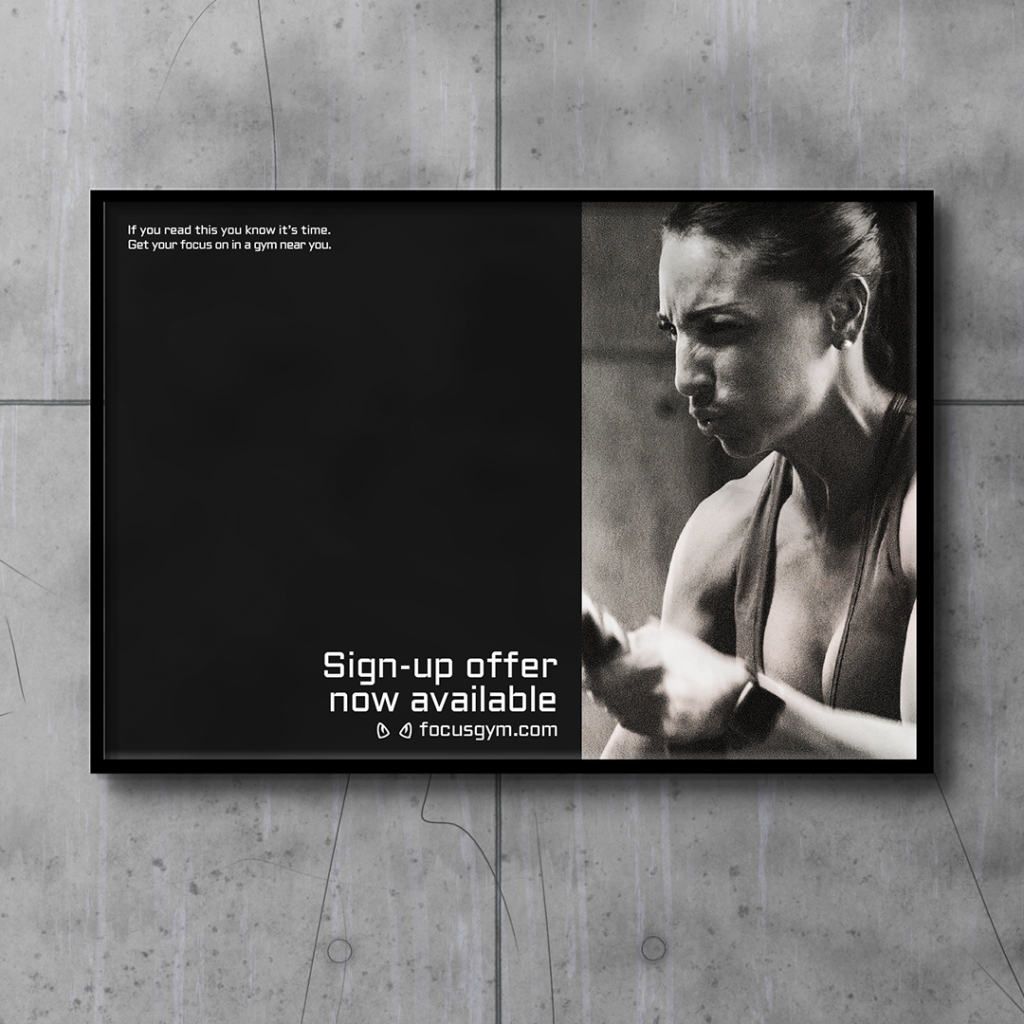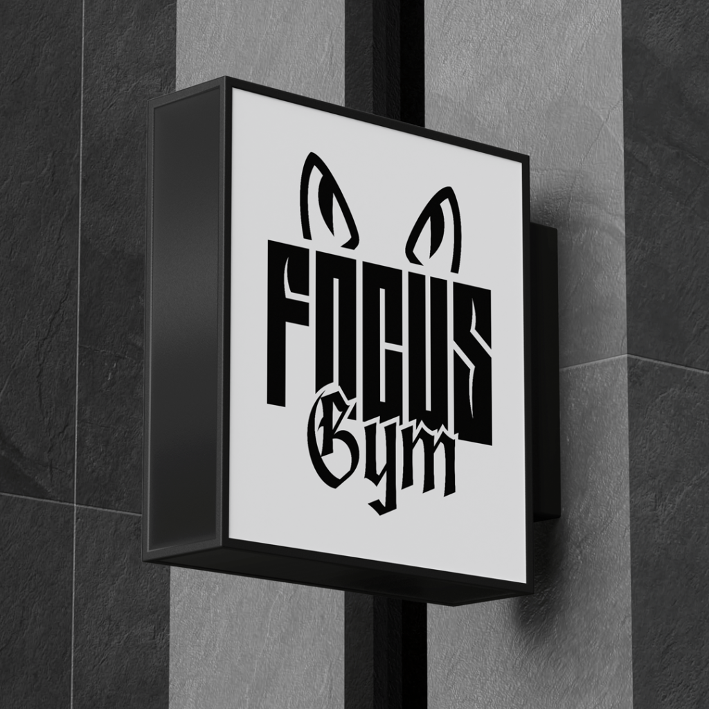 Zoals de naam zegt draait het in deze sportschool om je focus. De focus tijdens je workout en op je doelen. Dit woord is daardoor het middelpunt van het logo. Om deze zware letters meer karakter te geven en het rauwe idee achter de sportschool verder vorm te geven is het woord ‘gym’ in blackletter stijl toegevoegd.